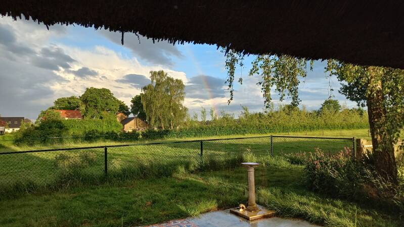 Diezelfde avond kijk ik uit het raam en zie daar een regenboog ......